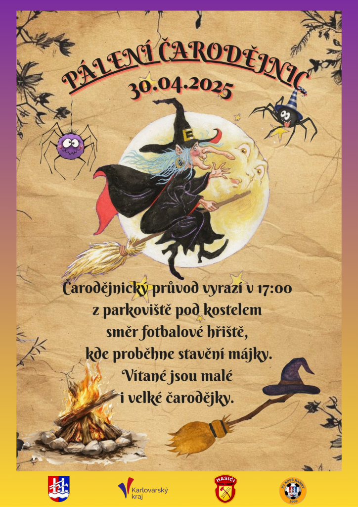 Přijďte si užít tradiční pálení čarodějnic, které se koná 30. dubna 2025 na fotbalovém hřišti. Průvod čarodějnic vyrazí v 17:00 z parkoviště pod kostelem a zamíří směrem na hřiště. Na místě bude připraveno také něco dobrého na zub a k poslechu.